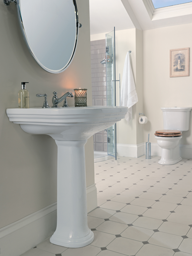The design theme for our Carlyon Collection is set by the authentic look of the Carlyon ceramic ware. Here, the timeless appeal is gently softened by curved corners and neat styling around the basin interior.